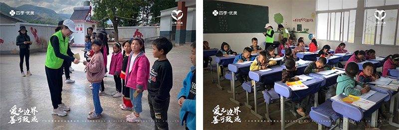 四季優(yōu)美已在昭覺捐建了2所小學、3座橋梁、 1所幼兒園,第4座橋梁已在規(guī)劃中;一對一資助學生人次近500名;暖冬活動項目已為10所鄉(xiāng)村小學的3000余名孩子送去了超30萬元的物資;捐獻逾千本書籍,充實所捐建學校的圖書室。截止目前,四季優(yōu)美各類公益捐贈累計近1000萬元。