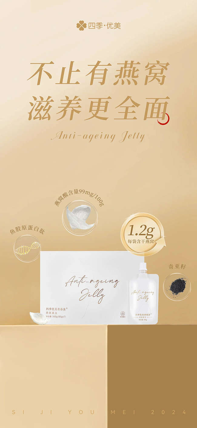 燕窩,自古便是珍饈美味,象征著尊貴與奢華。然而,繁瑣的泡發、挑毛、燉煮等環節,讓很多人望而卻步,畢竟,快節奏才是這個時代的主題詞。四季優美青春凍以先進工藝實現三秒即食,更懂你的所需。氣溫漸升的初夏,這剔透的燕窩果凍,如同少女初妝,清新而不失嬌媚,只看一眼,便已心曠神怡。它如流動的水晶,仿佛凝聚了初夏的日光,閃爍著誘人的光澤。持匙輕拌,那調皮的燕窩絲便翩翩起舞,搖曳生姿,宛若仙子下凡。